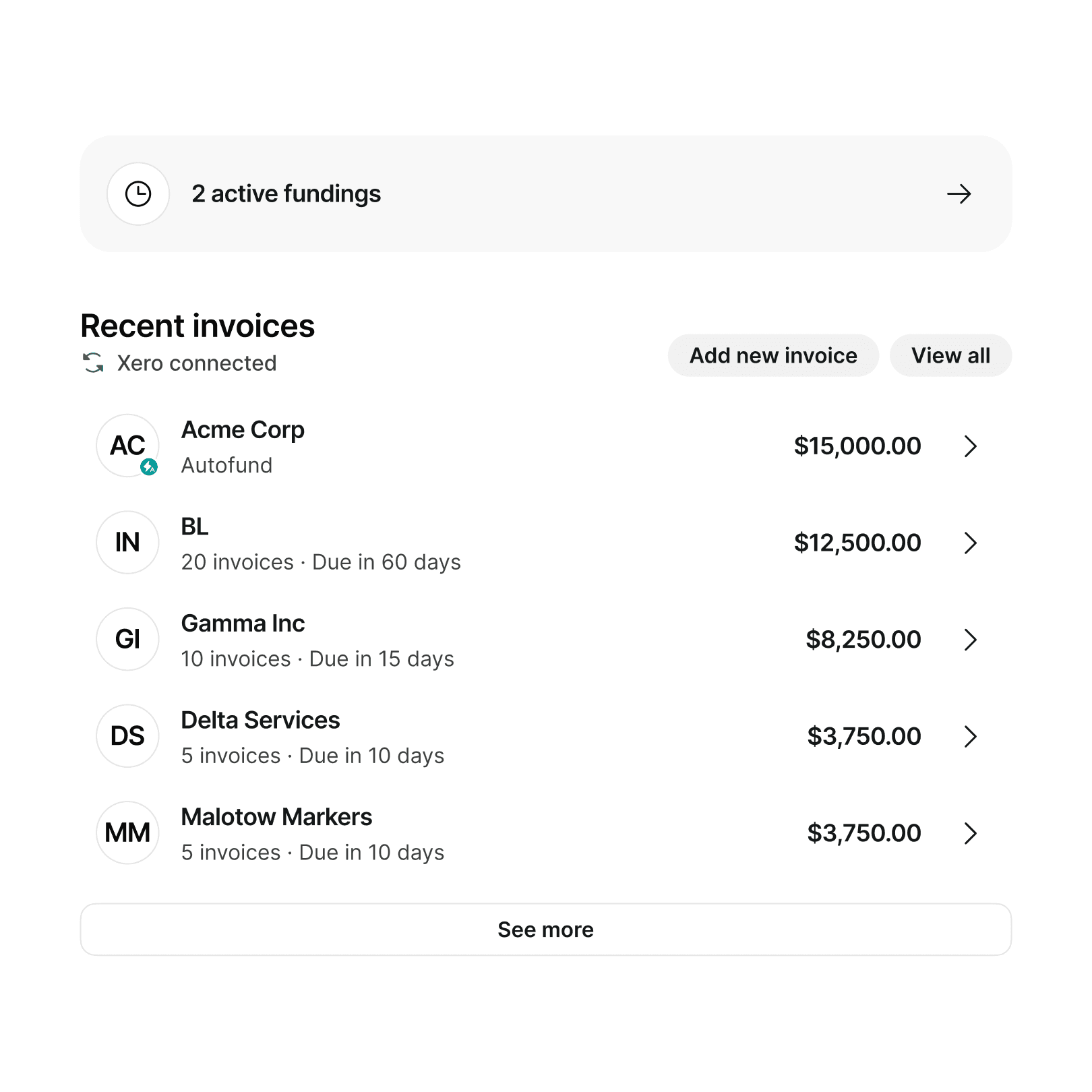 I redesigned our main dashboard so that there were more ways to go about submitting a funding request. Previously, clients could submit requests, but they couldn't attach any verification documents or additional info. This then had to be solved in email, making the app redundant. Increased in app funding requests by 31%, and increased the invoice value submitted through the app: up 28.36% over 20 months.