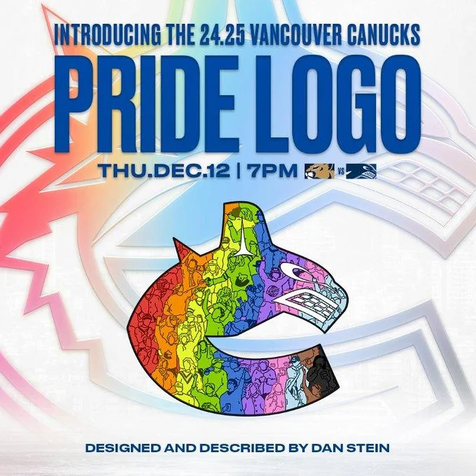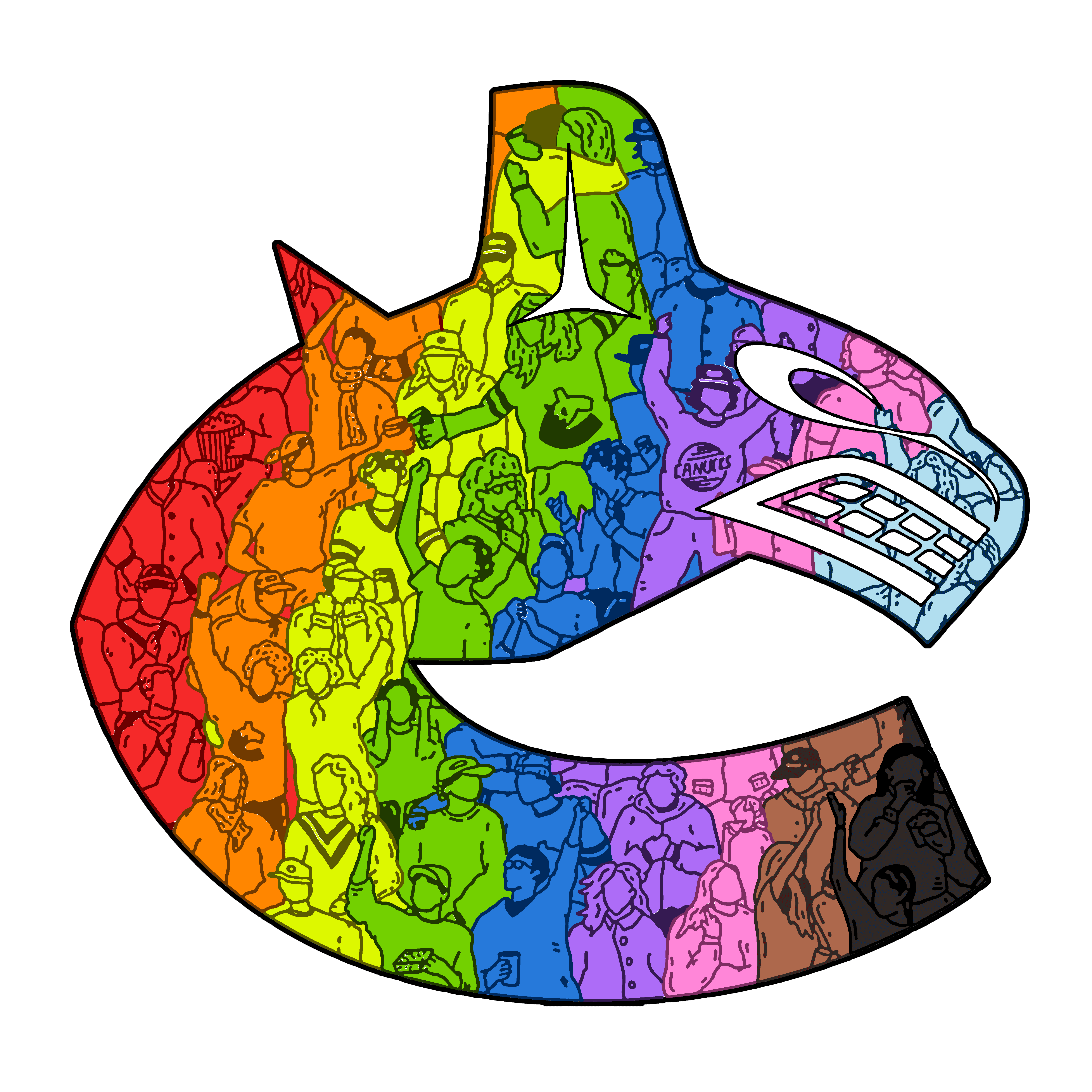 Every year, the Vancouver Canucks hosts a Pride Theme night to highlight inclusivity in sport and fight homophobia. I was asked to provide artwork for the '24/'25 season. To me, the best part about going to a hockey game is the moments that happen in the stands between people.